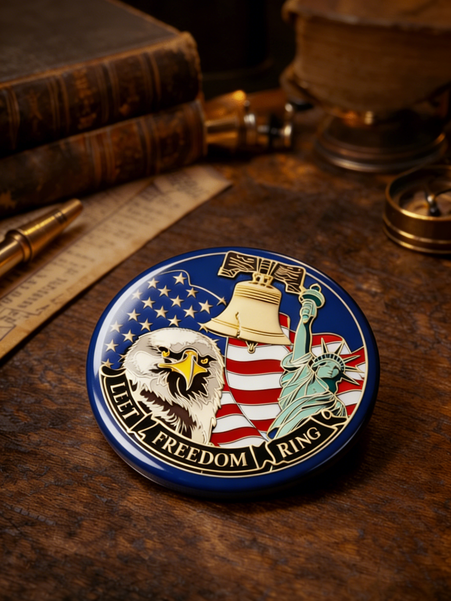 "Let Freedom Ring" Bald Eagle & Liberty Bell Patriotic Pin Badge