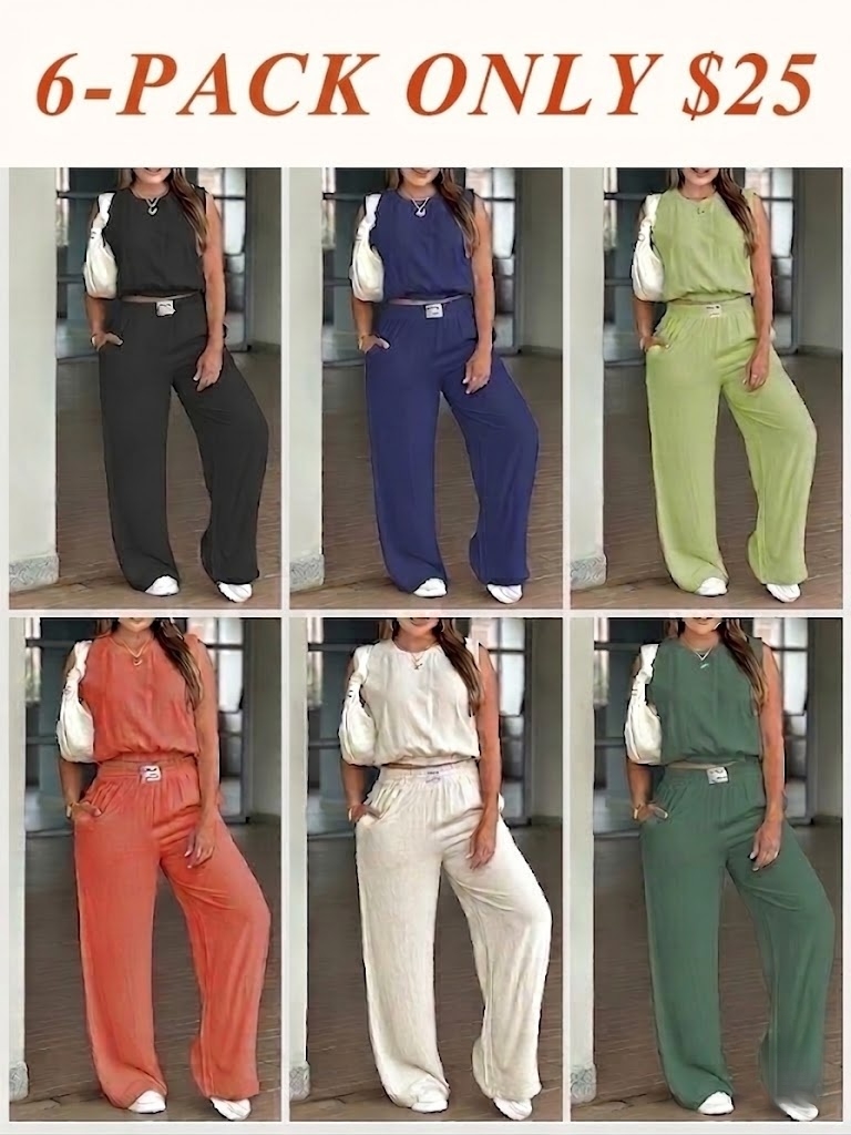 Women's 2-Piece Solid Color Tank Top & Wide Leg Pants Set