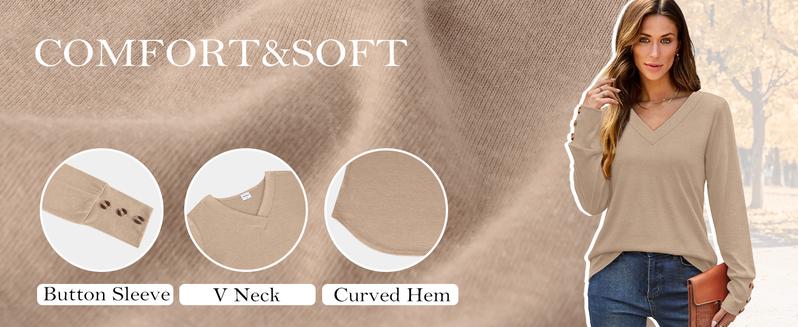 🌟Classic V-Neck Button-Detail Top 🌟 Fall 2025 Essential👚 Fabric & Feel:60% Cotton, 35% Rayon, 5% Spandex✔️ Feather-light and breathable✔️ 4-way stretch moves with you✔️ Skin-friendly softness — no irritation, all comfort