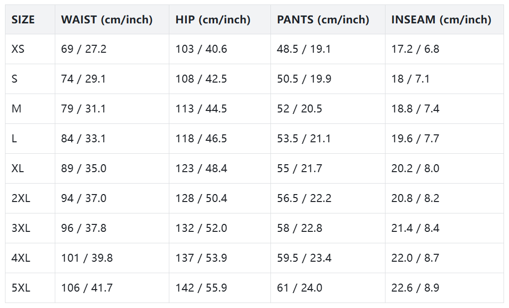 Body Measurements (in)