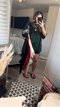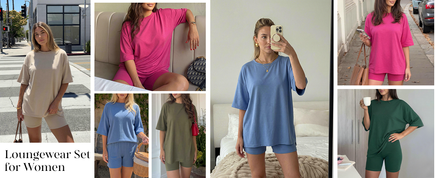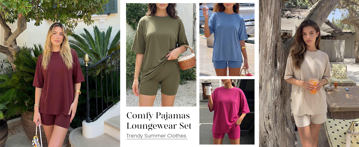 - Oversized tee with high-waisted biker shorts, perfect loungewear for summer