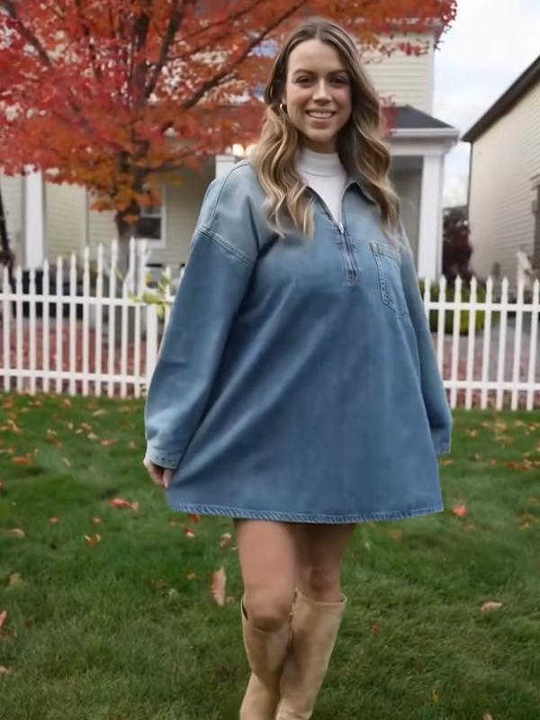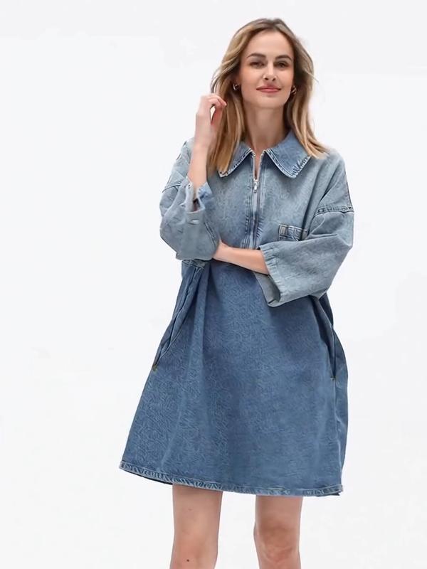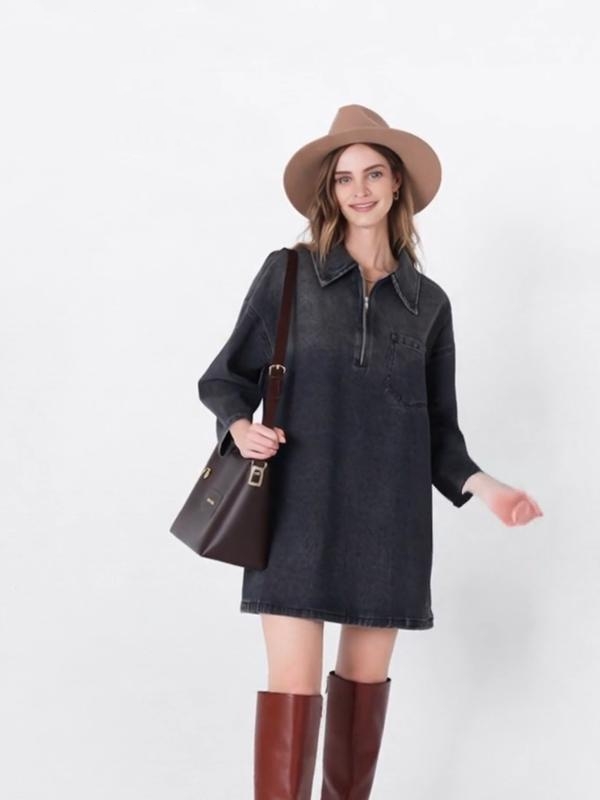 Upgrade your everyday wardrobe with this versatile denim dress featuring a modern half-zip collar and retro-washed finish. Designed for comfort and style, it’s the perfect go-to piece for daily wear and street-style looks.
