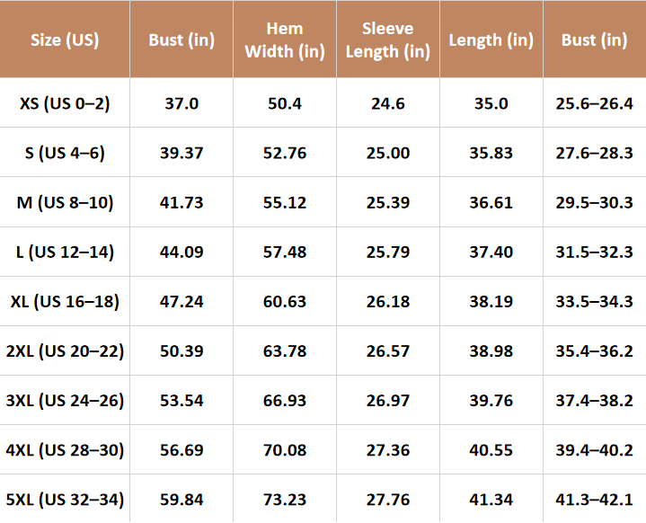 Available in sizes XS–5XL and multiple colors to suit all body types and styles